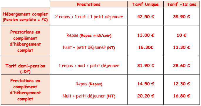 Les horaires des repas peuvent également être aménagés en fonction des besoins si signalement préalable